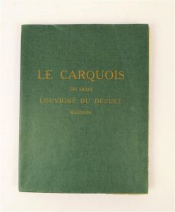 [FLEURET (Fernand)]. LE CARQUOIS DU SIEUR LOUVIGNE DU DEZERT, ROÜENNOIS, d'après les fragments d'un manuscrit inédit, et précédé d'une vie de l'auteur par son fils. Paris, Éditions du Monde Nouveau, 1923. In-4° broché, couverture verte. Édition de ce pastiche dû à Fernand Fleuret, elle est ornée de nombreuses vignettes gravées sur bois in-texte et de 5 burins-originaux très libres hors texte par DEMETRIOS GALANIS, dont un frontispice, tous monogrammés. Tirage à 251 exemplaires numérotés au composteur, celui-ci sur Hollande. Rares rousseurs. (Dutel, 1158).