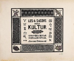 HERMANN-PAUL. LES 4 SAISONS DE LA KULTUR. Paris, Dorbon Aîné, (1915). Album in-plano, en feuilles, sous couverture imprimée. Titre et 5 bois en couleurs d'HERMANN-PAUL évoquant le comportement violent du soldat allemand en France pendant la première guerre mondiale. Album tiré 300 exemplaires numérotés, celui-ci numéroté 90 sur papier blanc. Toutes les planches, ainsi que la couverture, sont numérotées à la main et portent le cachet vert de l'artiste.