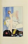 HERMANT (Abel). PHILI OU PAR-DELA LE BIEN ET LE MAL. Paris, La Guirlande, 1921. In-8, demi-velin bradel ivoire, titre calligraphié et dessin au dos, couvertures et dos conservés. Nombreuses charmantes compositions dans le style Art Déco de BRUNELLESCHI, dont 12 hors texte, le tout coloriées au pochoir et rehaussé d'or et d'argent par Jean Saudé. Tirage à 275 exemplaires numérotés, celui-ci sur Arches. Bel exemplaire.