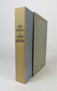 LAURENT-TAILHADE (Marie-Louise). LES NUITS DU XVIII° SIECLE. Paris, l'Ibis, 1950. In-8 broché, sous couverture et étui. Orné de nombreuses compositions hors-texte en couleurs de DANIEL SIGROS. Exemplaire numéroté sur Rives avec une suite des illustrations en deux tons. Étui et chemise un peu salis.