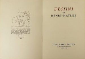 MATISSE (Henri). DESSINS. Paris, Galerie Louis Carré, Editeur, 1941. Grand in-8 broché, couverture rempliée. Bel album tiré à 500 exemplaires tous numérotés sur Arches et publié à l'occasion de l'exposition des dessins de Matisse à la galerie parisienne Louis Carré. Etat neuf.
