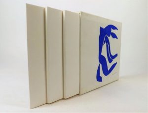 MATISSE (Henri). LES NUS BLEUS. Paris, Chauveau, 2005. 3 volumes in-8 carré, en feuilles sous chemises et étui orné de l'éditeur. Belle édition ornée de 16 illustrations dont « la chevelure » sur le coffret, de MATISSE mises en couleurs au pochoir d'après la couleur originale des chutes des papiers gouachés découpés d'origine. Chaque illustration est accompagnée d'un texte d'Anne Coron, historienne d'art. Bel exemplaire sur Arches.