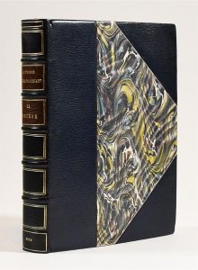 (Méheut) - CHATEAUBRIANT (A. de). LA BRIERE. Paris, Mornay, 1924. In-8 carré, demi maroquin bleu nuit à coins, t. dorée, couv. et dos (Lavaux). Frontispice et gravures in texte tirés en 2 teintes ; l'un des exemplaires numérotés sur Rives, enrichi d'une AQUARELLE ORIGINALE signée de Méheut. Exemplaire en excellent état joliment relié par Lavaux.