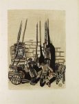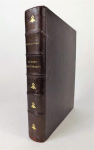 (Méheut) - LE BRAZ (Anatole). AU PAYS DES PARDONS. Paris, Picard, 1937. In-4°, basane violine, dos à nerfs orné, couv. et dos (reliure de l'époque). Orné de 53 compositions originales de Mathurin Méheut gravées sur bois en couleurs par Georges Beltrand. Un des 390 exemplaires numérotés sur Arches, non rogné.