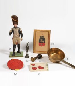 Grande louche de cantinière en laiton, manche orné d'un décor de grands poinçons losangés à l'aigle couronnée, probablement utilisée par une cantinière de la garde impériale