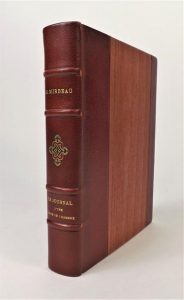 MIRBEAU (Octave). LE JOURNAL D'UNE FEMME DE CHAMBRE. Paris, Mornay, 1932. In-8, demi-chagrin cassis à bandes, dos à nerfs orné, tête dorée, couverture. Illustrations in et hors-texte en couleurs de CH.-A. EDELMANN. Exemplaire numéroté sur Rives, enrichi d'un DESSIN EN COULEURS SIGNE par l'artiste. Infimes frottis.
