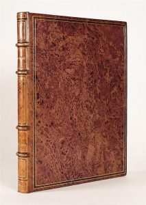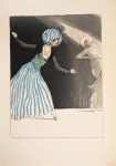 MOLIERE. LE SICILIEN. Paris, Société des amis du Livre moderne, 1914. In-8, veau raciné cuivre, filets dorés et noir encadrant les plats, plats doublés de veau fauve avec filets d'encadrement et grandes volutes dorées aux angles, dos à nerfs orné de caissons dorés, gardes de soie brochée, double garde, tranches dorées sur témoins, couverture conservée, étui (Charles Meunier, 1923). Magnifiques compositions en couleurs de DRESA, de son vrai nom André Sagio, conservateur au Musée du Louvre. L'illustration se compose de 5 planches et d'un grand bandeau imagé, le tout en 6 états, dont une décomposition des couleurs. Tirage strictement limité à 150 exemplaires sur Japon, celui-ci numéroté et réservé à un membre de la Société des Amis du livre Moderne ; il est enrichi d'un charmant DESSIN AQUARELLE ORIGINAL et du menu relié à la fin. TRES BEL EXEMPLAIRE EN RELIURE DOUBLEE DE CHARLES MEUNIER.