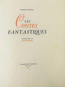NODIER (Charles). LES CONTES FANTASTIQUES. Paris, Calmann-Lévy, 1945. In-8 broché, sous chemise et étui. Pointes-sèches en couleurs de MARIO PRASSINOS. Exemplaire numéroté sur Rives. Étui et chemise frottés.