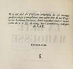 PERRET (Jacques). LA BETE MAHOUSSE. Paris, N.R.F., 1951. In-8, demi-maroquin réglisse à coins, dos à nerfs, tête dorée, couvertures et dos (Dreneau). Edition originale. Tirage à 80 exemplaires numérotés, celui-ci l'un des 75 sur Lafuma-Navarre. Bel exemplaire.