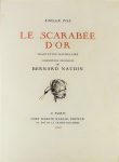 POE (Edgar). LE SCARABEE D'OR. Traduction de Baudelaire. Paris, Kaelin, 1929. In-4°, en feuilles sous chemise et étui de l'éditeur. Edition illustrée d'un portrait de l'auteur en frontispice, de 35 grandes compositions originales hors-texte, dont 1 légendée, et de 2 compositions in-texte, de BERNARD NAUDIN. Tirage à 321 exemplaires numérotés, celui-ci sur vélin d'Arches. Couverture piquée.