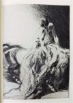 RÉGNIER (H. de). LA CANNE DE JASPE. MONSIEUR D'AMERCOEUR. LE TREFLE NOIR. CONTES A SOI-MEME. Paris, Devambez, 1924. In-4° maroquin acajou, filet noir d'encadrement sur les plats, larges dentelles dorées intérieures, gardes de moire acajou, étui. Illustré de 10 eaux-fortes originales hors texte de DRIAN, toutes protégées par une serpente légendée. Exemplaire numéroté sur pur fil teinté de Rives, filigrané à la marque de l'éditeur. Exemplaire irréprochable dans une reliure parfaitement exécutée.