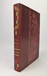 RHAIS (Elissa). LA CHEMISE QUI PORTE BONHEUR. Paris, Plon, 1925. In-8, demi maroquin parme à coins, dos mosaïqué de petits rectangles de maroquin orange et sable, t. dorée, couv. et dos (Durvand-Pinard). Excellent recueil de récits inspirés par des scènes de la vie musulmane, dont la plupart se situent en Algérie. Edition originale, l'un des 50 exemplaires numérotés sur Hollande. A l'état de neuf.