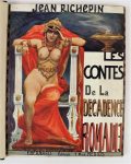 RICHEPIN (Jean). CONTES DE LA DECADENCE ROMAINE. Paris, Bernard, 1906. In-4°, demi chagrin havane, couvertures (Reliure de l'époque). Première édition illustrée. Elle est ornée de 21 planches (jeux du cirque, orgies...) tirées en trichromie par M. DELAVELLE et de la décomposition d'une planche. Bon exemplaire.