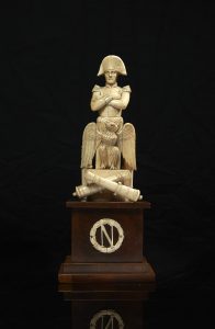 Souvenir du Premier Empire, Travail de Ponton ou Dieppois, en ivoire : Buste de l'Empereur Napoléon 1er, les bras croisés, une aigle à ses pieds