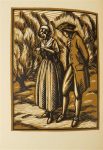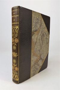 TILLIER (Claude). BELLE PLANTE ET CORNELIUS. Paris, Mornay, 1921. In-8, demi-maroquin chaudron à coins, dos mosaïqué de fleurs de maroquin rouge et vert, d'un arc et carquois dorés au centre, tête dorée, couvertures et dos (Flammarion et Vaillant). Bois gravés de DESLIGNIERE. Exemplaire numéroté sur Rives. Dos un peu éclairci.