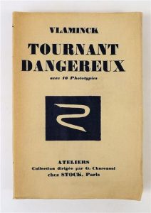 VLAMINCK (Maurice de). TOURNANT DANGEREUX. Paris, Stock, 1929. In-12 broché, non rogné.             Edition originale illustrée de 16 phototypies hors-texte. Tirage à 550 exemplaires, celui-ci l'un des 10 exemplaires numérotés sur Japon Impérial. Couverture un peu passée sinon bon exemplaire.