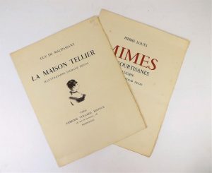 VOLLARD (Ambroise). 2 bulletins illustrés in folio de souscription pour 2 ouvrages illustrés par Degas. Mimes de P. Louÿs et la maison Tellier de Maupassant. Bon état général.