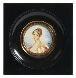 Ecole française, début XXe siècle Portrait de l'impératrice Miniature sur ivoire, monogrammé AF en bas à droite. Diamètre à vue : 4,5 cm Cadre : 11 x 11 cm Objet fabriqué avant le 1er juin 1947 composé en tout ou en partie d'ivoire...