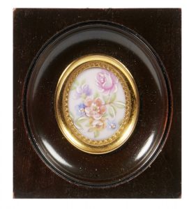 décor émaillé d'un bouquet fleuri. Début XXe siècle 3,5 x 3 cm
