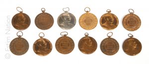 Société Royale Hippique de Belgique, concours Hippique International Ensemble de douze médailles circulaires en bronze doré et argenté, ornées du portrait d'Albert Ier en buste, roi des Belges. Années 1930, 1931, 1932 et 1933. Diamètre : 5 cm...