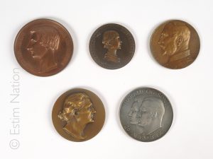 Comtesse de Paris d'après Philippe BESNARD, Duc de Brabant d'après Léopold WIENER F. On joint une médaille en bronze commémorative du violoniste belge Eugène YSAYE d'après Louis DUPONT