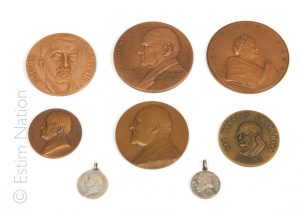 et au revers ornée de motifs de mains tendant des bouquets. Diamètre : 8 cm On y joint six médailles en bronze et métal à l'effigie du professeur Jean-Louis Faure, de Jacques Maritain, de Winston Chruchill, du maréchal Foch et du maréchal Joffre. Diamètre : de 3 à 7 cm Bon état