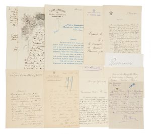 Ensemble de documents constituant correspondance avec Charles CHUSSEAU-FLAVIENS comprenant : - lettre autographe signée du Prince Ghika (1873-1954), sur papier à entête de l'Hôtel Splendid à Bucarest, datée du 8 septembre 1906 et rédigée en...