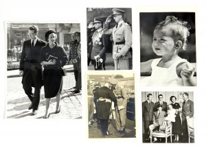 Ensemble d'environ 40 photographies (divers formats) représentant le Roi Baudouin 1er de Belgique et sa famille dont portraits, photo de sa jeunesse, cérémonies officielles, avec son épouse Fabiola Certaines abîmées