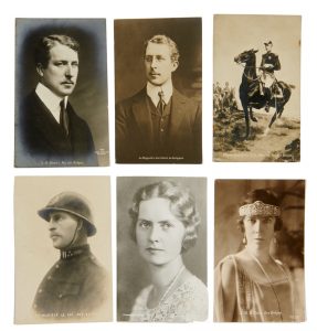 Ensemble d'environ 650 cartes postales sur Albert Ier de Belgique et son épouse Elisabeth: (portraits, souvenirs de guerre, commémorations, funérailles, voyages officiels au Congo, revue des armées, etc), ainsi que sur son fils Le Prince Charles...