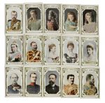Ensemble comprenant des cartes couleurs: Séries de la Reine Astrid Edité par Côte d'Or, Séries sur des personnalités par le Chocolat Guérin-Boutron, parties de cartes à jouer, vignettes à collectionner, un album "Nos Enfants Royaux" pour...