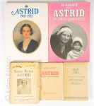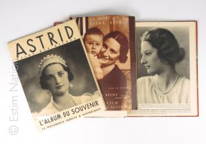 cuir rouge, filets or, dos à nerfs. Bel exemplaire. On joint 6 autres exemplaires non reliés en états divers. - L'illustration S.M. La Reine Astrid. 1905-1935. Album hors-série juin 1936. 3 exemplaires, états divers. - Georges RENCY Astrid Reine des Belges. 1 vol. Reliure percaline. Ed. Henri Bertels, Bruxelles 1936. - 12 volumes divers sur le thème de la Reine Astrid (publications d'époque et postérieures)