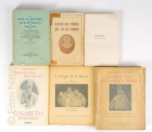 1939 - DENIS (Jean) La reine Astrid, 1936 On y joint un ensemble de dix-sept volumes illustrés et modernes pour la plupart sur le thème des reines Louise-Marie d'Orléans, Charlotte de Belgique, Elisabeth de Belgique.