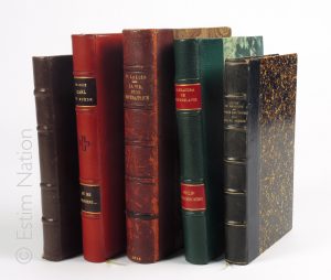 Ensemble de cinq volumes en demi-reliure cuir, dos à nerfs sur le thème des monarchies européennes, certains illustrés comprenant : - Louise de Belgique, Autour des trônes que j'ai vu tomber, 1921 - LOLIEE (Frédéric), La vie d'une impératrice...