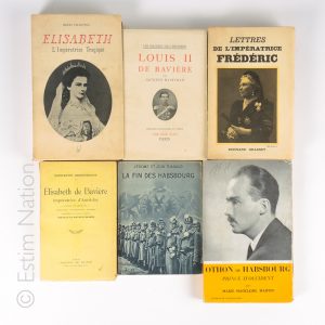 Ensemble de volumes brochés, modernes, certains illustrés comprenant essais, biographies et divers sur le thème de la famille de Habsbourg, l'impératrice Sissi ou Louis II Bavière par Jean des Cars et divers auteurs, essais par Otto de...