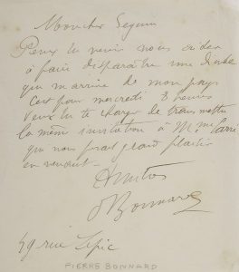 Pierre BONNARD (1867-1947). L.A.S., à son « cher Seguin » ; 1 page in-12.