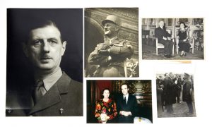 Ensemble d'environ 7 photographies représentant des chefs d'Etat français (René Coty et Charles de Gaulle) Divers formats