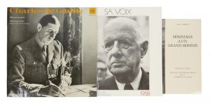 Dimensions de l'emboitage : Hauteur : 32,5 cm - Largeur : 33,5 cm On y joint dans un emboitage similaire un ensemble de 10 disques époques et pressages divers des discours du Général de Gaulle ou récits biographiques. Circa 1970-1980 On y joint dans un emboitage de toile moutarde, un ensemble de trois disques "Hommage" pressage production Afa Disque avec notamment la lecture du testament du général.