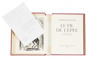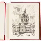 DE GAULLE (Charles) Le fil de l'épée. Paris, éditions Marcel Lubineau, 1963 Illustrations au burin d'Albert DECARIS. Un volume in-4 en feuilles sous emboitage entoilé lie-de-vin. Exemplaire numéroté 232, un des 475 exemplaires sur vélin de...