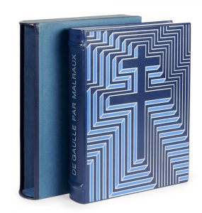 MALRAUX (André) de Gaulle. Paris, éditions "Club du Livre", 1980. Illustrations de Moretti. Un volume in folio relié à décor en relief de la croix de Lorraine sur les plat, dos à nerfs et sous emboitage. Tirage à 4500 exemplaires, celui-ci...