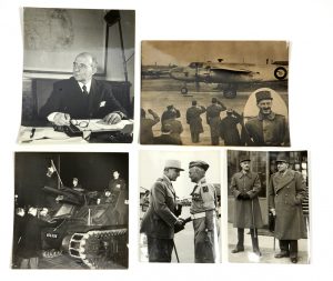Ensemble d'environ 20 photographies (divers formats) représentant le Maréchal de Lattre de Tassigny dont portraits, cérémonies, défilés, portraits mortuaires, funérailles Certaines abîmées