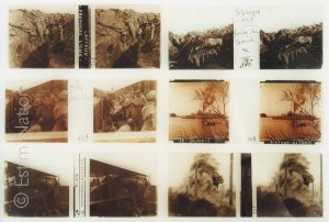Collection de 147 vues stéréoscopiques sur le thème de la 1ère guerre mondiale Plaques positives sur verre, format 10,5 x 4,5 cm env. La plupart numérotées et annotées de légendes manuscrites ou typographiques. Réunies dans 7 boites...