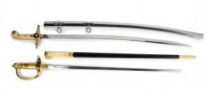 - Largeur : 14 cm (Fêlure à la poignée). On y joint une réplique d'épée d'apparat en métal et plastique à décor de l'aigle impériale et du N couronné. Longueur : 90 cm
