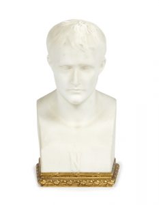 D'après Antonio CANOVA (1757-1822) Buste de Napoléon Ier Epreuve en biscuit, portant le numéro 2811, monture en métal doré à décor de jonc rubanné et guirlande de laurier. XXe siècle Hauteur : 13 cm - Largeur : 6,5 cm - Profondeur : 6 cm