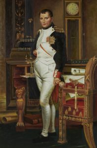 D'après Jacques Louis DAVID (1748-1825) Napoléon dans son cabinet de travail Huile sur toile, reproduction contemporaine du tableau conservé à Washington. Hauteur : 60 cm - Largeur : 90 cm