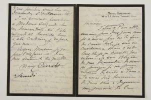 Mary CASSATT. L.A.S., Mesnil-Breaufresne par Mesnil-Theribus (Oise) Samedi [automne 1911], au critique d’art Achille Segard ; 4 pages in-8 à son adresse (petit deuil).