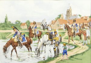 Pierre Albert LEROUX (1890-1959) Le repos des cuirassiers Aquarelle sur papier, signée en bas à gauche. A vue : Hauteur :19 cm - Largeur : 28,5 cm Cadre : 45 x 55 cm