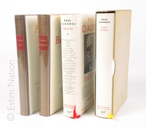 jaquette CLAUDEL (Paul) Théâtre (Tome II) et Oeuvre poétique, Bibiothèque de la Pléiade, éditions NRF Gallimard, 1952 et 1967 Deux volumes sous jaquette, un avec cartonnage.