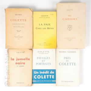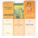 (Sidonie-Gabrielle) Oeuvres, Paris éditions Mercure de France, 1930 Un volume broché, enrichi d'un envoi autographe de l'auteur. Etat moyen On y joint environ 45 volumes brochés par Colette et documentation sur l'auteur, un disque Colette vous parle. Etats moyens.