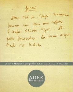 Belle lettre sur la quatrième exposition des Impressionnistes, sur Degas, sur ses collectionneurs, et sur sa formation, à l’auteur de Mary Cassatt, un peintre des enfants et des mères (Ollendorff, 1913).{CR} Elle lui renvoie le livre en regrettant de n’avoir pu faire tout ce qu’il demandait. «  Je ne me rappelle pas les exposants de 1879 il y en avait je crois 12 ou 15 – Degas Forain Pissarro et Monet en faisait partie et aussi Zandomeneghi introduit par Degas. Pour les amateurs qui ont mes tableaux je ne les connais pas tous je n’ai pas suivie mes tableaux une fois vendu. Monsieur Kelekian a acheté à la vente Rouart mon tableau et dernièrement il m’a écrit qu’il avait acheté un pastel un buste de femme à une vente, j’ai fait un portrait de sa petite-fille une de mes meilleurs »... Elle cite, parmi ses collectionneurs, Olivier Sainsère, Pierre Decourcelle, le comte Doria, le bijoutier Henri Vever, Pierre Hugo, M. de Sailly… Elle regrette que les Durand-Ruel ne fassent pas de bonnes photos de leurs tableaux, Vollard a de meilleures épreuves. « Je crois que j’ai produit plus que vous ne pensez. M. Vollard a un tableau que j’ai exposé en 1873 et qui a été fait en Espagne. C’est après les Rubens à Anvers que j’ai fait cette tête à Rome. Je n’ai connu M. Degas qu’en 1874. J’avais vu des tableaux de lui à une de leurs expositions mais c’est seulement en 77 qu’il a exposé ses Danseuses. Il a changé de manière à ce moment et est devenu beaucoup plus lumineux »… Elle ajoute : « Je dois vous dire que si j’ai une haute idée des devoirs des parents c’est que j’ai vu les miens. Du reste en Amérique les parents était comme cela. J’ai des amis qui ne parlent que de devoir vis-à-vis de leurs enfants »…{CR} Notes au crayon pour préciser certains points du livre (en partie soulignées en bleu par Segard). « Il n’y avait pas d’enseignement à l’Académie de Philadelphie, on allait là pour dessiner d’après des plâtres, les antiques ou copier. C’est en revenant d’Italie que j’ai vu des Degas, et que je me suis dit que je voyais les œuvres d’un véritable artiste nourrit des maîtres Italiens. Degas connaissait à fond les primitifs Italiens. – Je n’étais pas à Paris quand les impressionnistes ont fait leur exposition 1874. Degas du reste les a quittés quand ils se sont appelés impressionnistes. Nous nous sommes appelés Indépendants ».