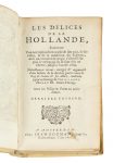 PARIVAL (Jean-Nicolas de), Les Délices de la Hollande, dernière édition. Amsterdam chez Jean Bouman, 1678. Un volume In-16, illustré. Illustrations : frontispice, carte générale, 16 plans de villes hollandaises, une planche représentant les...
